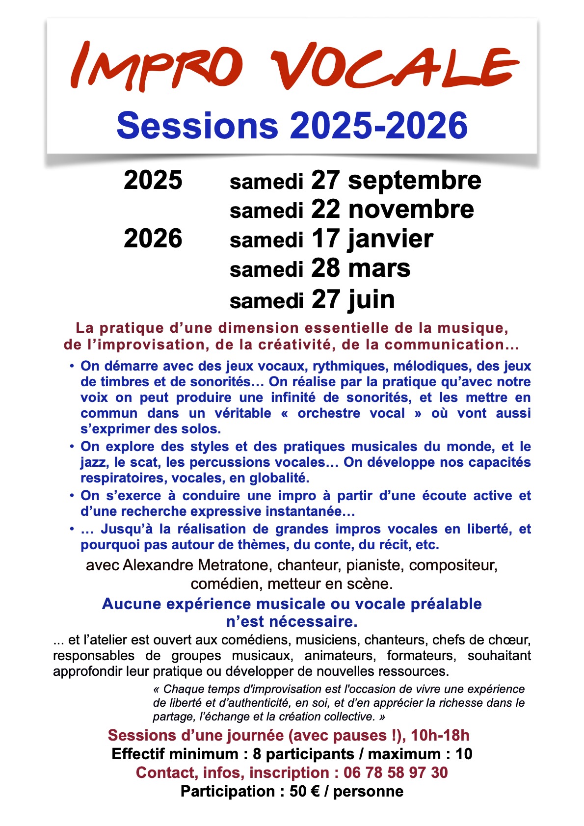 Contact, infos, inscription : Alexandre Metratone : 06 78 58 97 30