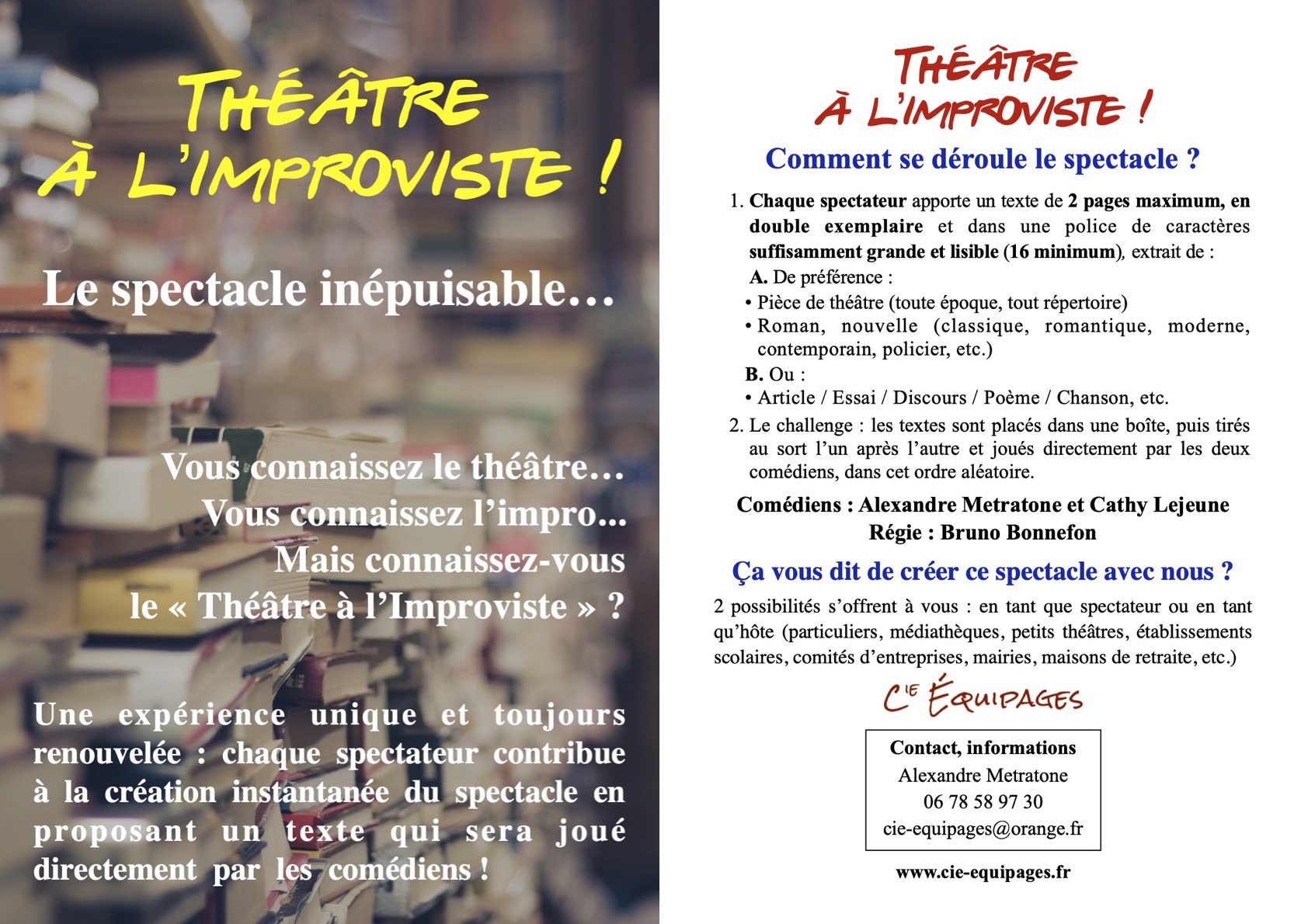 Organiser, très facilement, une représentation théâtrale chez vous avec vos amis et, à l’issue du spectacle, échanger de manière conviviale avec les comédiens et techniciens ? C’est ce que nous vous proposons.